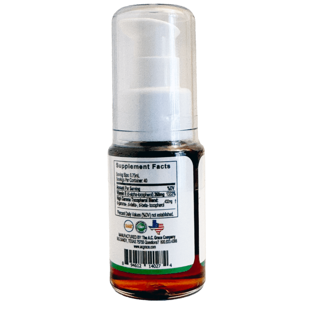 This liquid Vitamin E form of our UNIQUE E® Mixed Tocopherols Concentrate Oil is ideal for vegetarians and those who prefer to not swallow a capsule, as well as for variable dosing for children and animals. Kosher and Halal friendly, and certified Vegan. .75 ml (four pumps) = one 700mg softgel